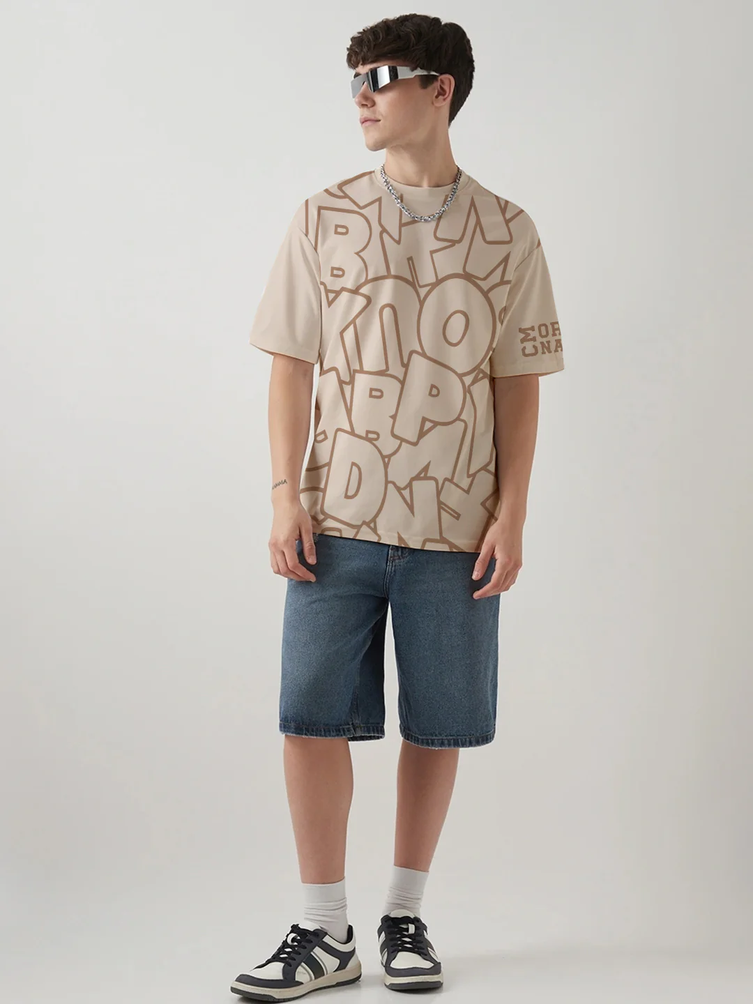 Alpha Pattern Graphic Printed Oversized T-Shirt - Cream