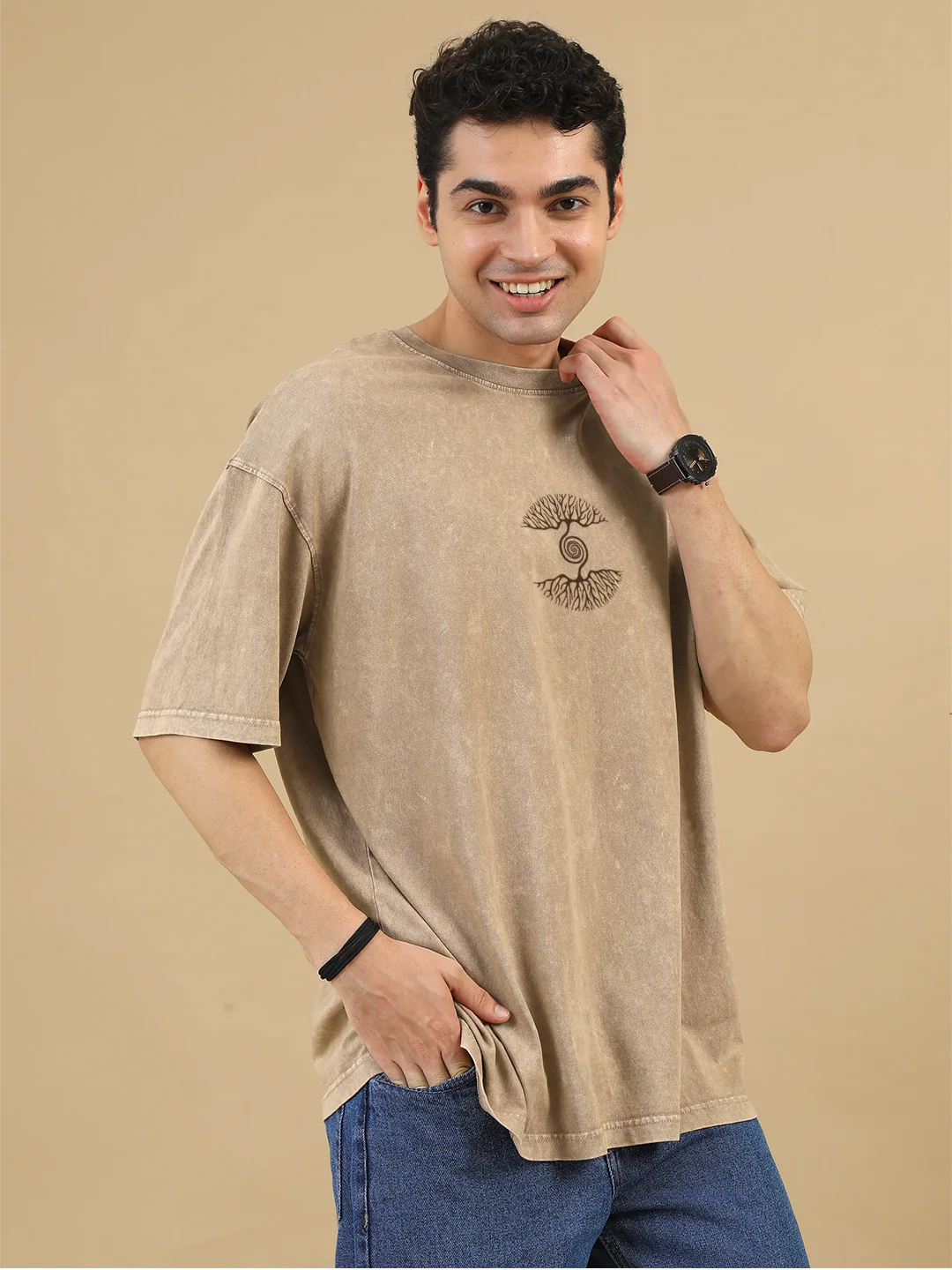 As Above So Below Acid Wash Graphic Printed Oversized T-Shirt - Quick Sand