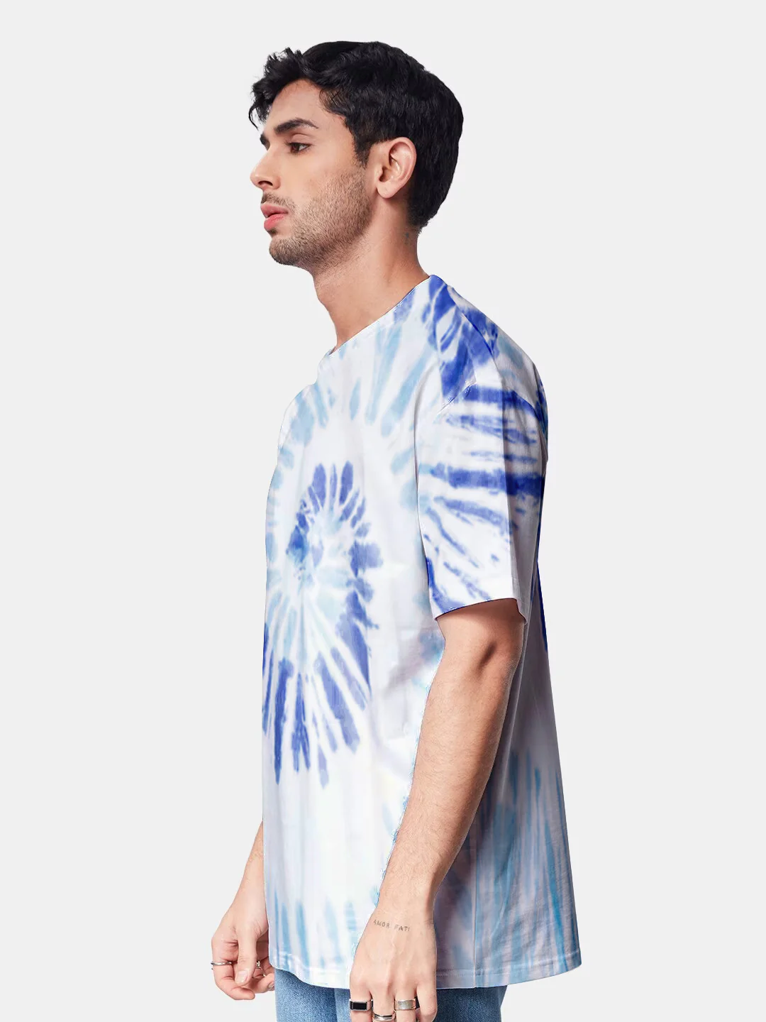 Plain Blue and Blue Spiral Oversized T-Shirt - Tiedye